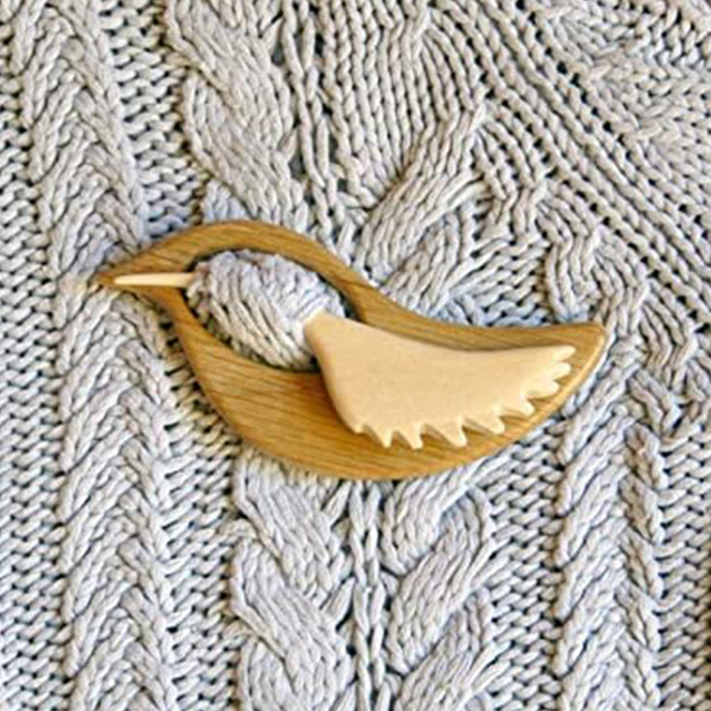 Brooch Pin with Wooden Animal Pattern