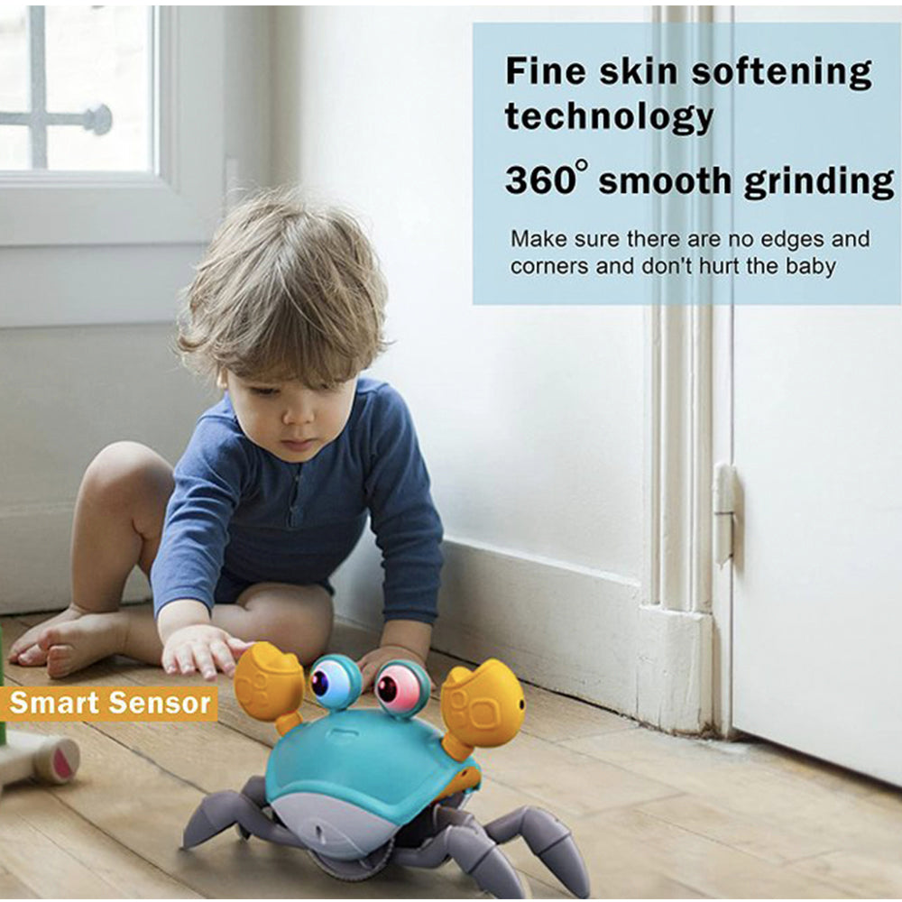 This lovely crab toy is equipped with an automatic-induction module that can regonize and make response the obstacles around it. So. when you try to catch it. it will move in the opposite direction.