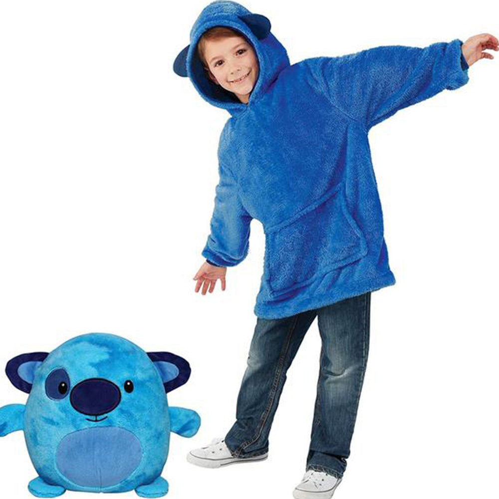 The oversized design gives the warmth of a blanket with the convenience of a hooded sweatshirt and allows for years of wear – your child will grow into their Pets Hoodie season after season! And when you are not wearing them. roll them back up into a fun plush toy to play with or even use as a pillow! The Pet Plush and the Hoodie are one solid piece. just zip it up to turn it into a pet.
