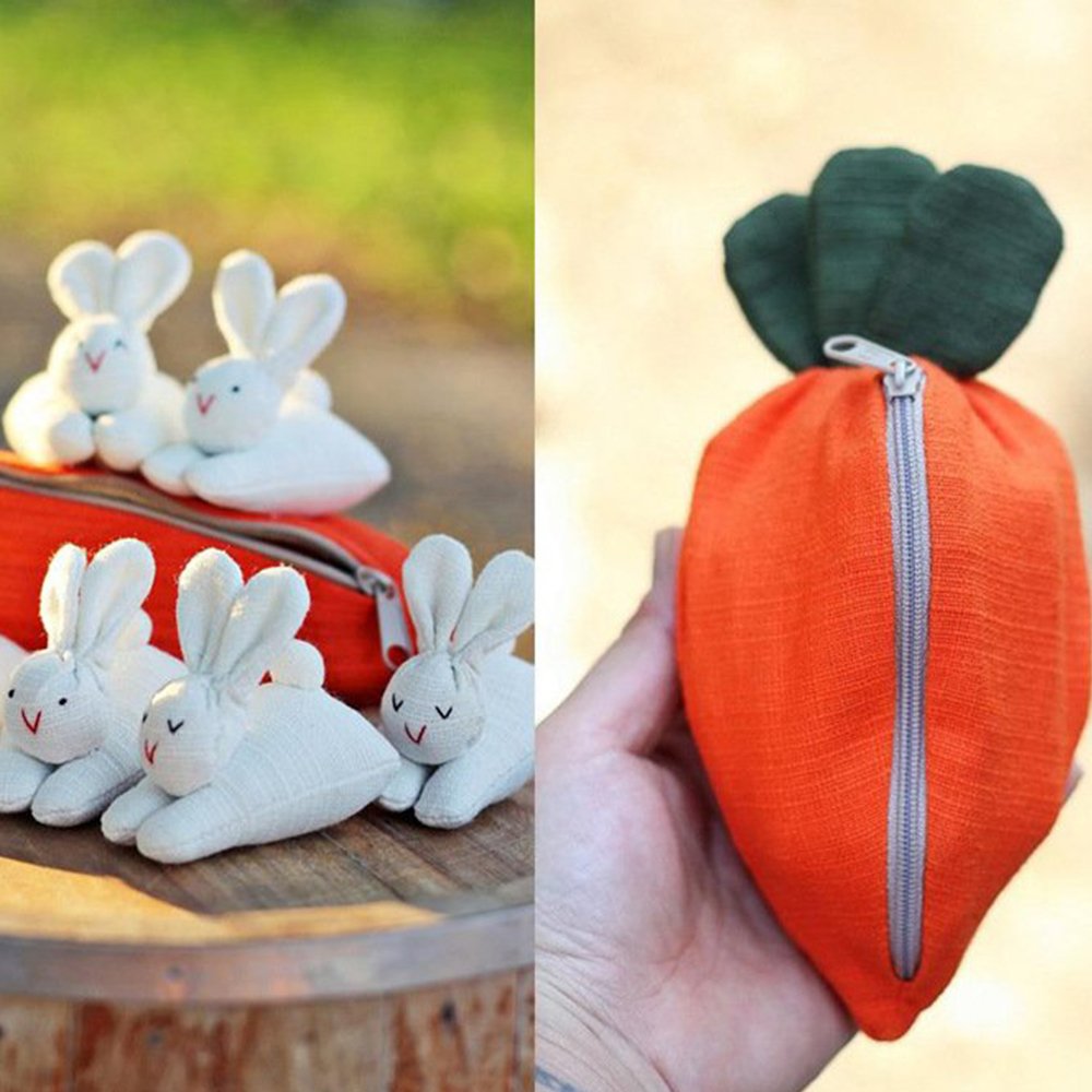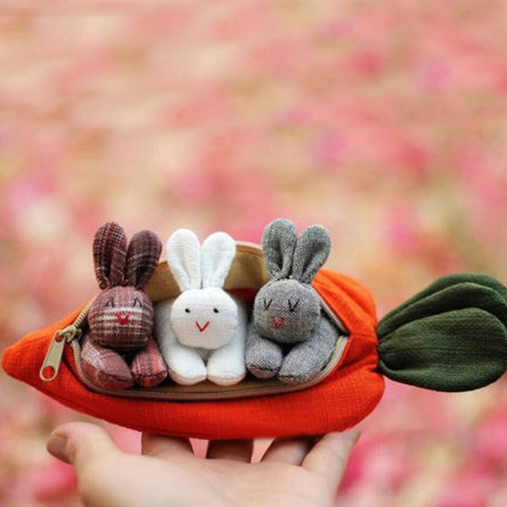 - FINE ARTWORK: Fine workmanship without extra thread. 3 rabbit doll in a carrot shape purse.cute enough. It’s really unique and adorable. Cute cartoon design add warmth to the home. Christmas. Easter. New Year Decor.
