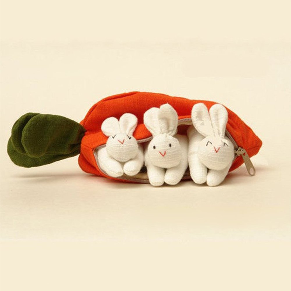 - GOOD MATERIAL:Made of hand-woven cotton. these sweet bunnies come nestled inside in a cute. zippered carrot pouch. Whenever three special friends are needed. they’re ready to pop out!