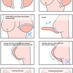 3.Stand in front of the mirror. press and hold contour cups to skin for several moments to adhere cups to skin. to place breasts comfortably into adhesive bra cups.