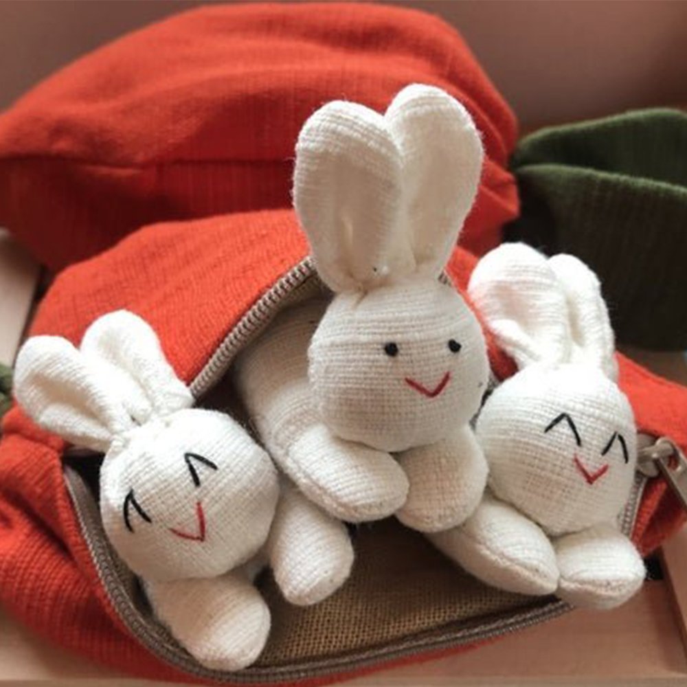 - FINE ARTWORK: Fine workmanship without extra thread. 3 rabbit doll in a carrot shape purse.cute enough. It’s really unique and adorable. Cute cartoon design add warmth to the home. Christmas. Easter. New Year Decor.