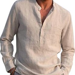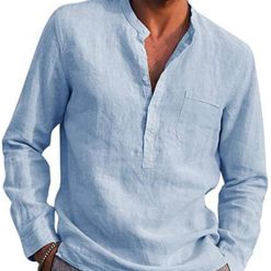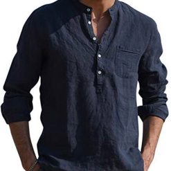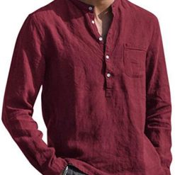- Stylish Design: Casual henley neck shirts. stand collar. simple style. solid color. slim fit. long sleeve. button-down closure. rounded hem. featured button detail.