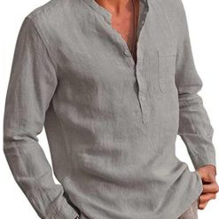 - 1*Men’s Cotton Linen Long Sleeve Casual T Shirt