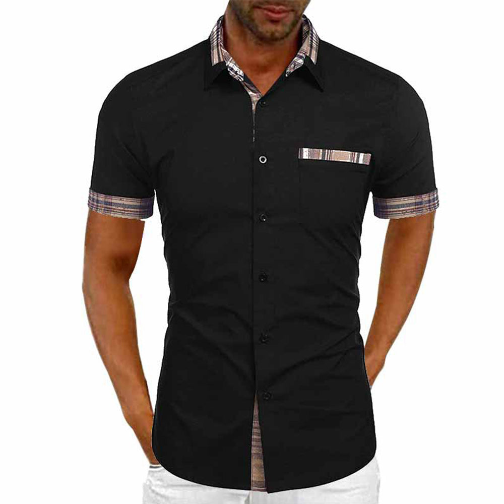 - Plaid design on neck short sleeve casual work shirt for men. high quality casual cotton button-down dress shirt for men make you handsome and comfortable.