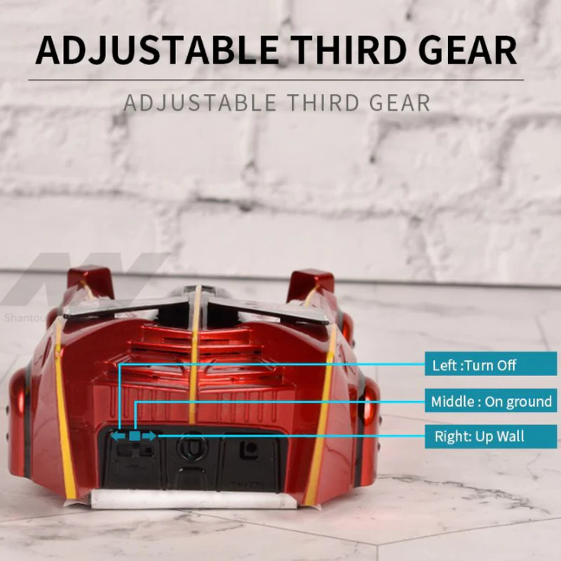 This novel remote control car with aerodynamic design has “Wall/Floor” Dual Modes. it can climb steadily on the ground. smooth walls. mirrors. windows. and even on the ceiling.