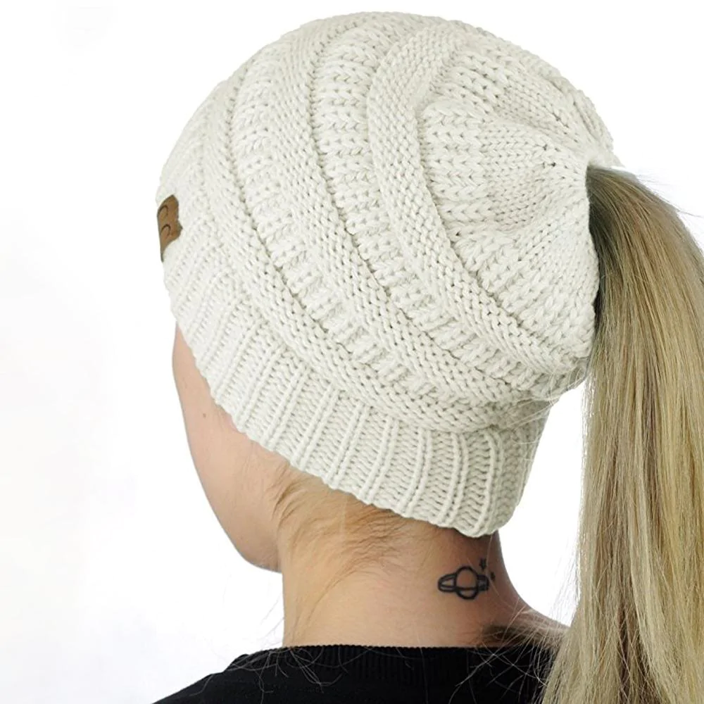 Rock a sassy ponytail even on cold weather with this Messy Bun Knitted Ponytail Winter Hat Beanie!